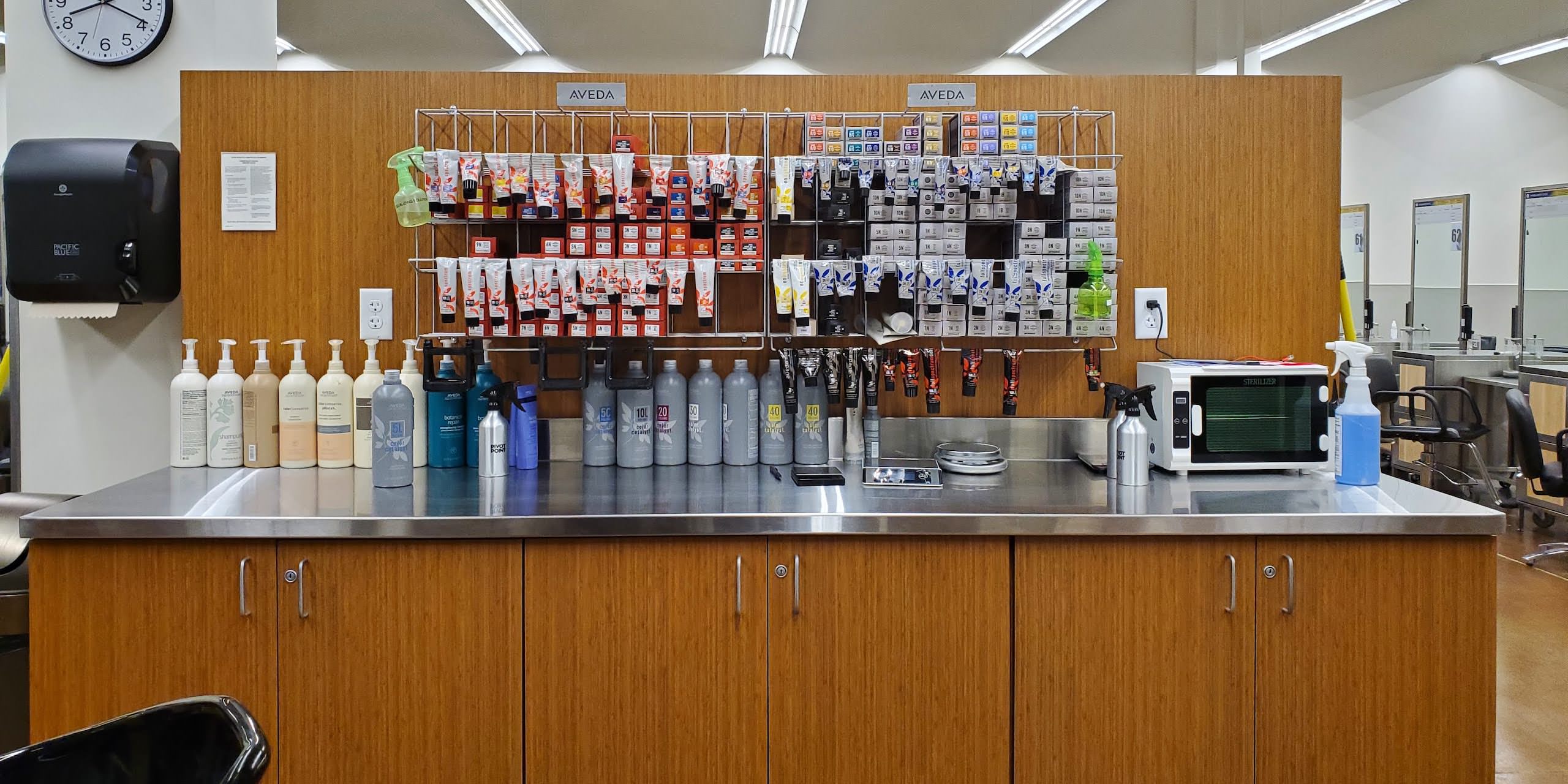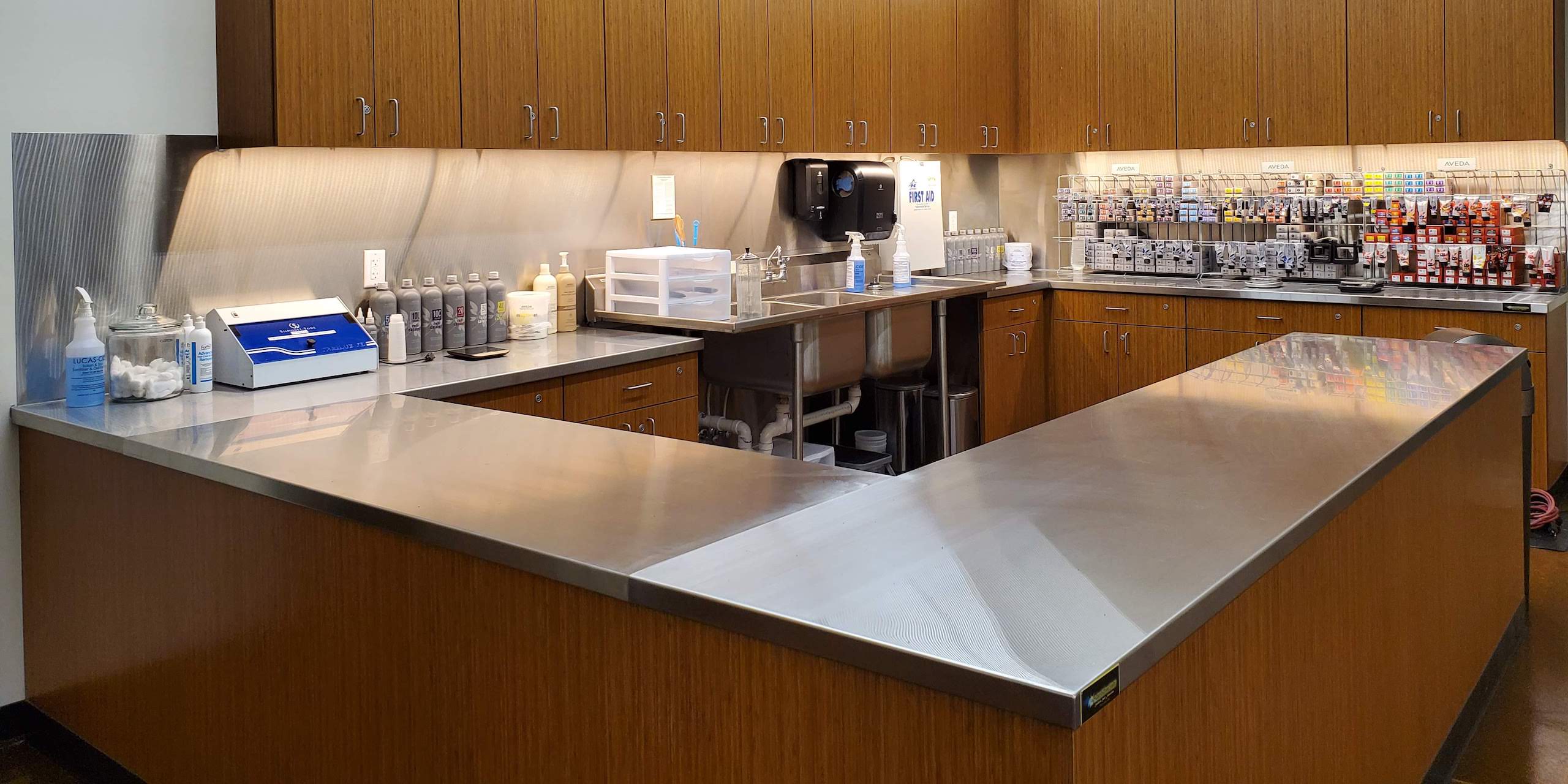 Aveda in Carmel, Indiana was looking for custom stainless steel countertops and wall panels for their new location.