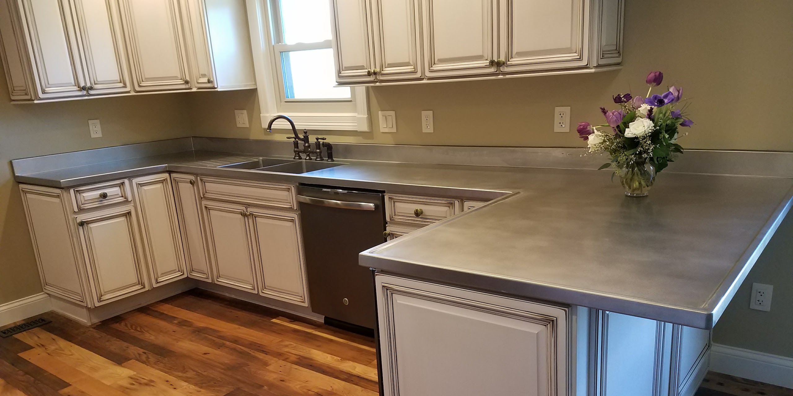 Metal countertops come in a variety of metals including: stainless steel, copper, brass, bronze, zinc and steel. The counters also come in different patterns and patina finishes. We also provide different edging options for the client to choose from. Edges include our standard turn down, bullnose, chamfered, and marine. In addition to materials our countertops are available in all shapes and sizes.