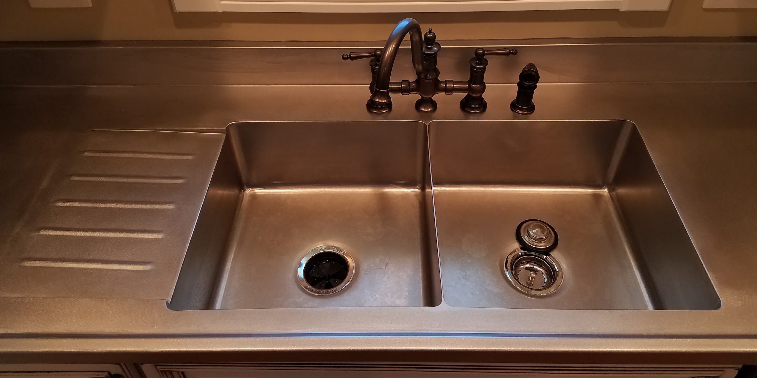 Clients have the option to choose between undermount, drop-in, and farmhouse style sinks. These sinks are available in single bowl, double bowl and triple bowl options. Sinks have the option of having integrated drainboards, cutting board ledge, and custom drain placement. Other options include: corner radius, zero radius corners, and material thickness. All residential sinks include sound deadening to reduce the sound when using the sink. Most of our sinks are fabricated out of 16ga 304 #4 brushed finish, but other materials are available. Copper, brass, and hammered patterns are available.